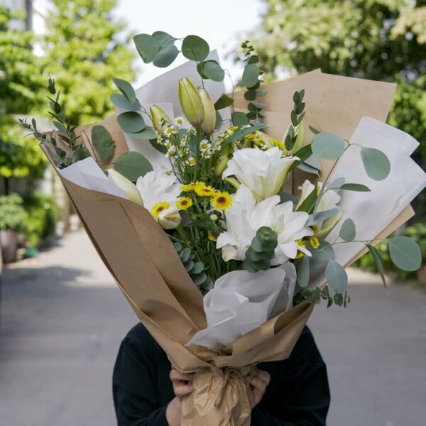 Kết hợp trang trí – phối với giấy gói trắng hoặc giấy tổ ong để tăng tính thẩm mỹ.
